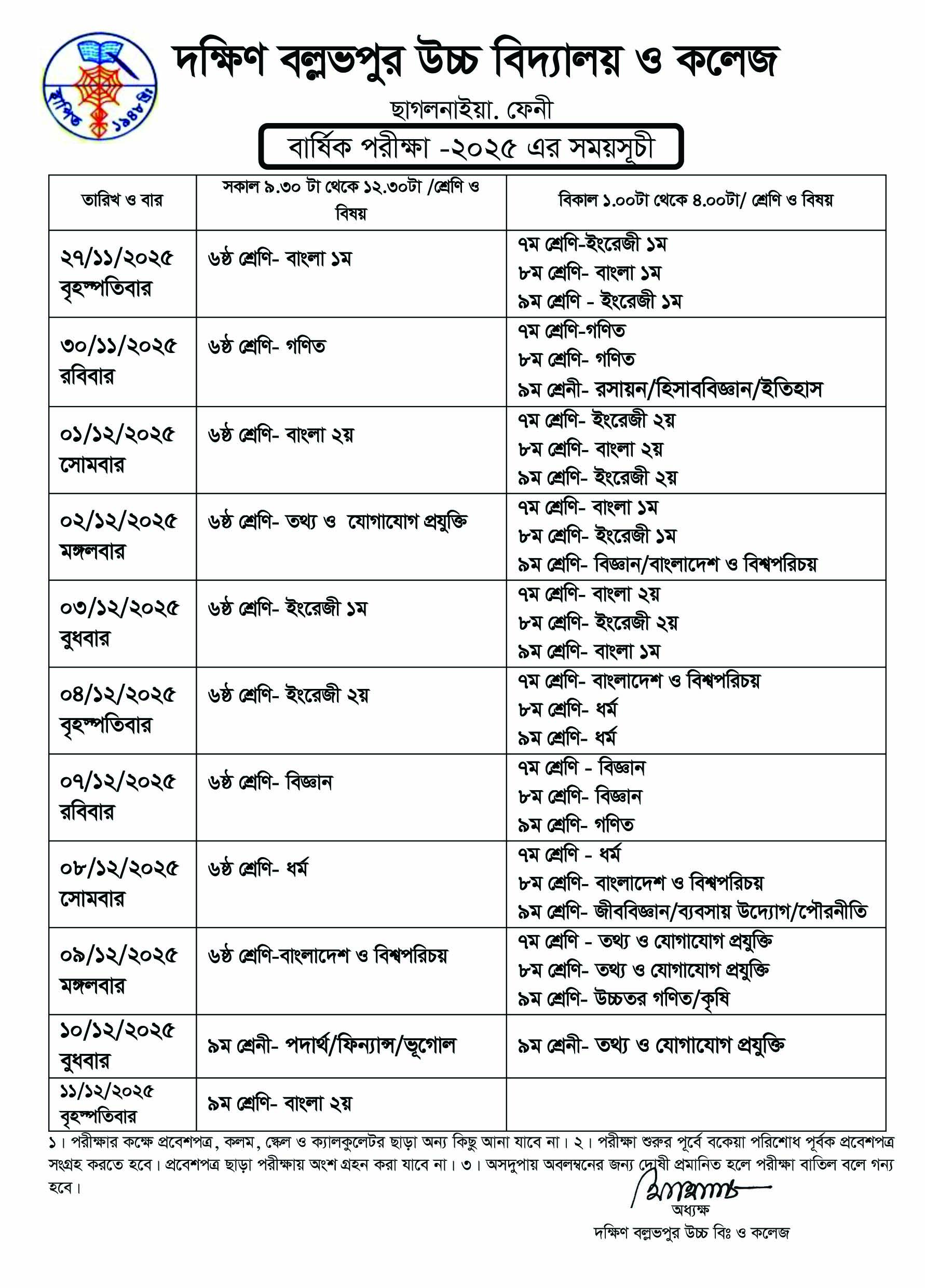 ৬ষ্ঠ থেকে ৯ম শ্রেনির বার্ষিক পরীক্ষার সময়সূচি-২০২৫ |