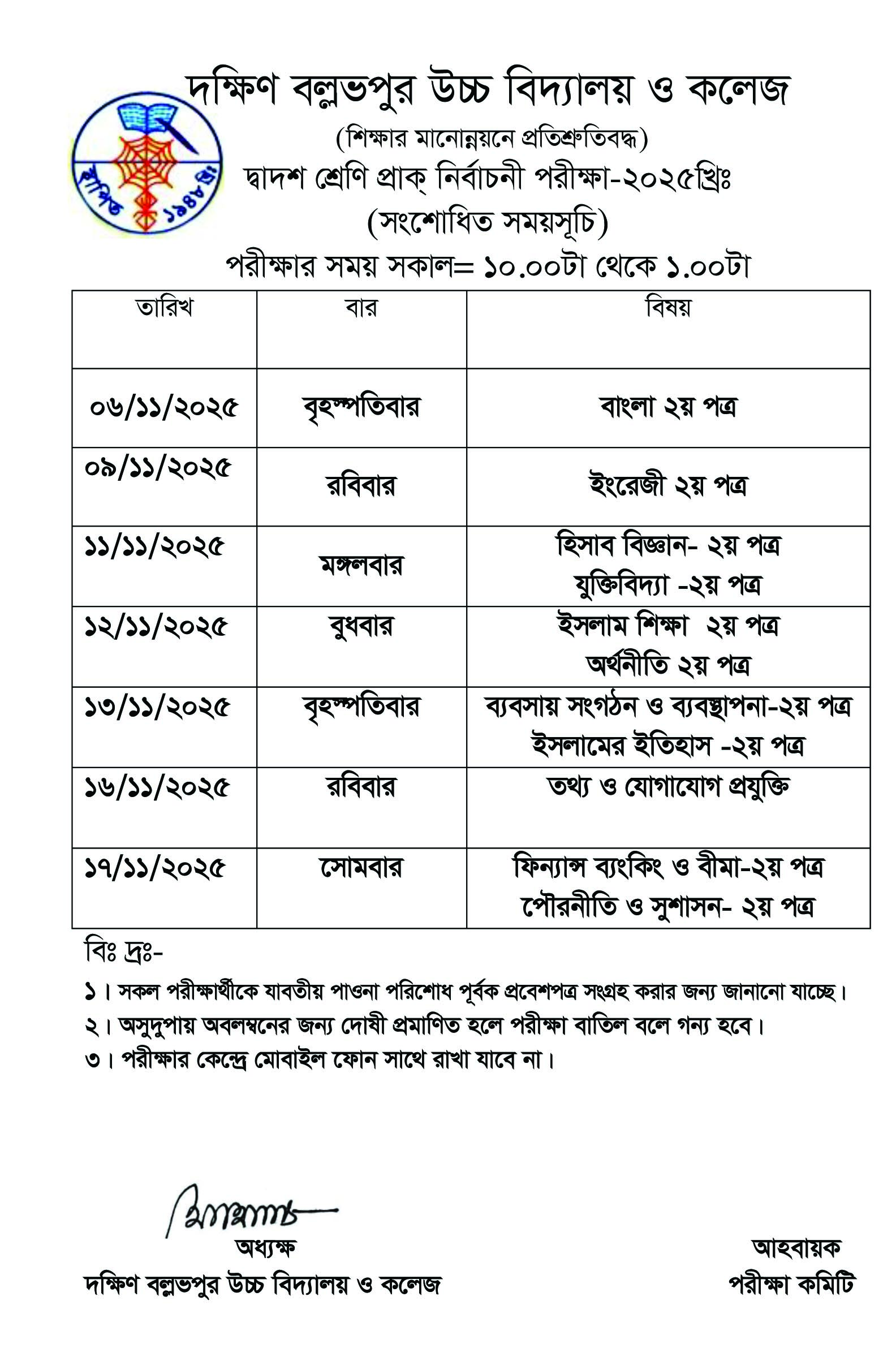 দ্বাদশ শ্রেণির প্রাক্ নির্বাচনী পরীক্ষার সময়সূচি-২০২৫খ্রিঃ |
